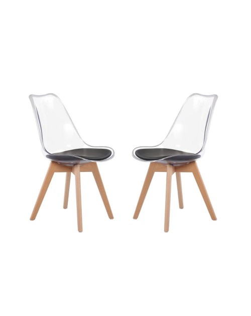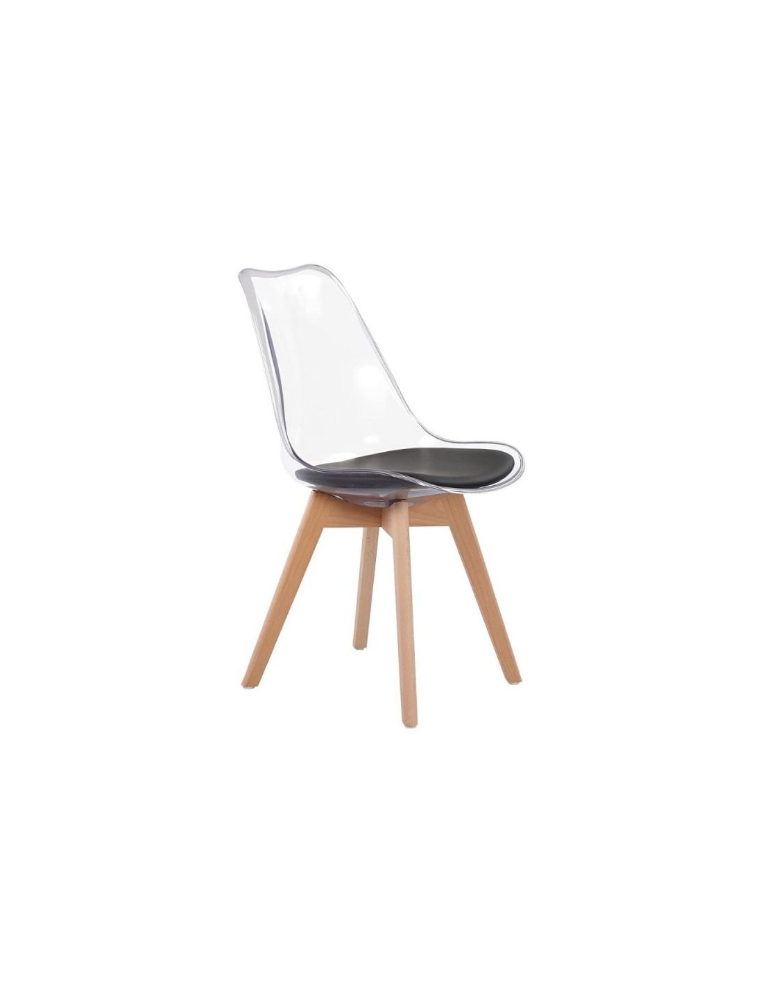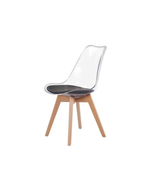 Sedia trasparente in PET con cuscino ecopelle e gambe in legno Tebe
