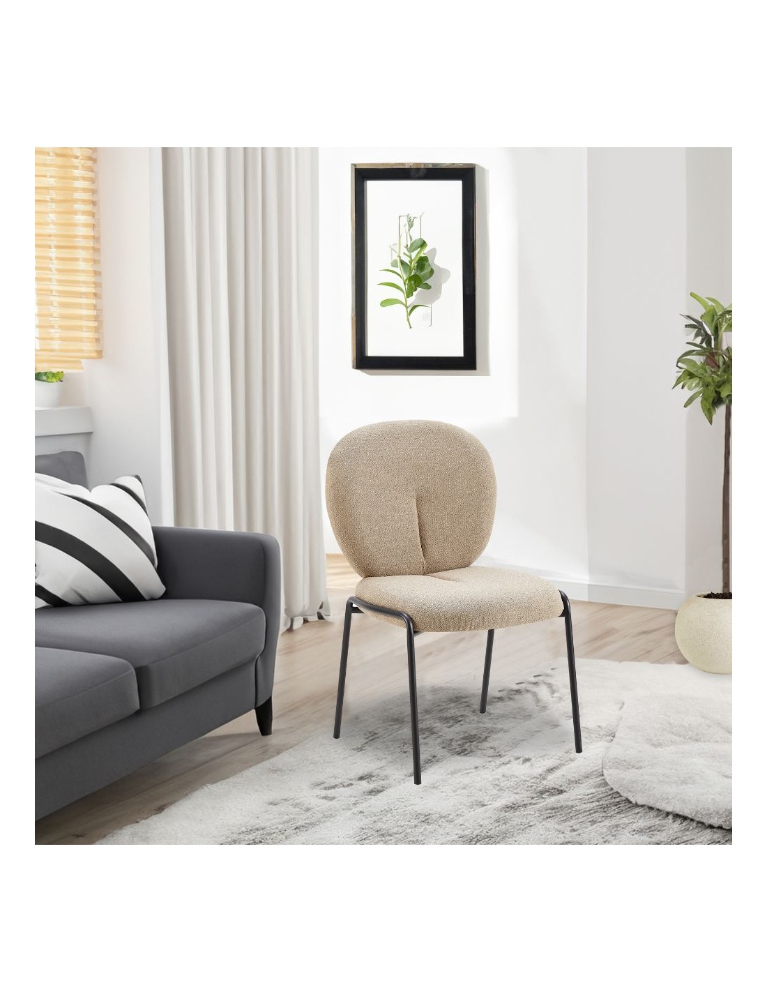 Sedia da pranzo tessuto teddy beige Sirio 53x39x94h