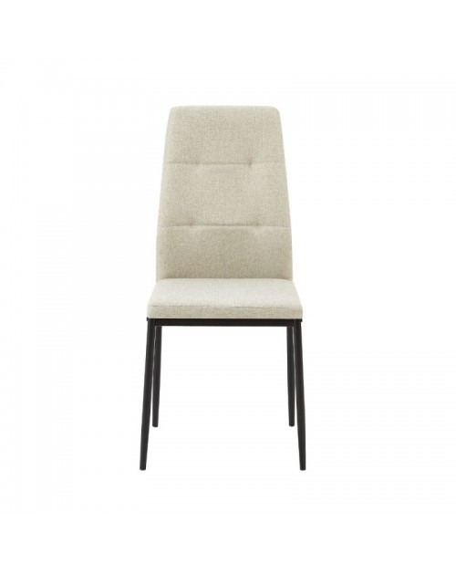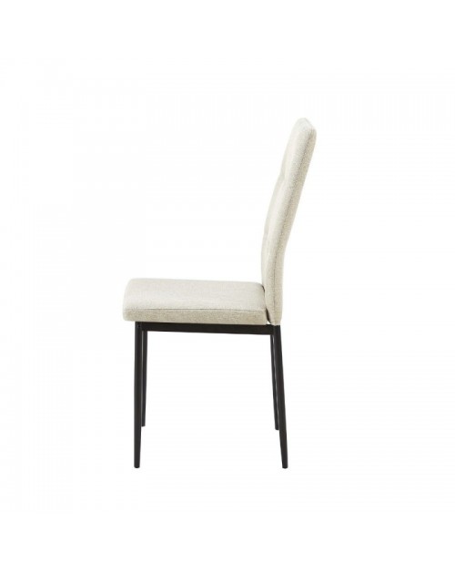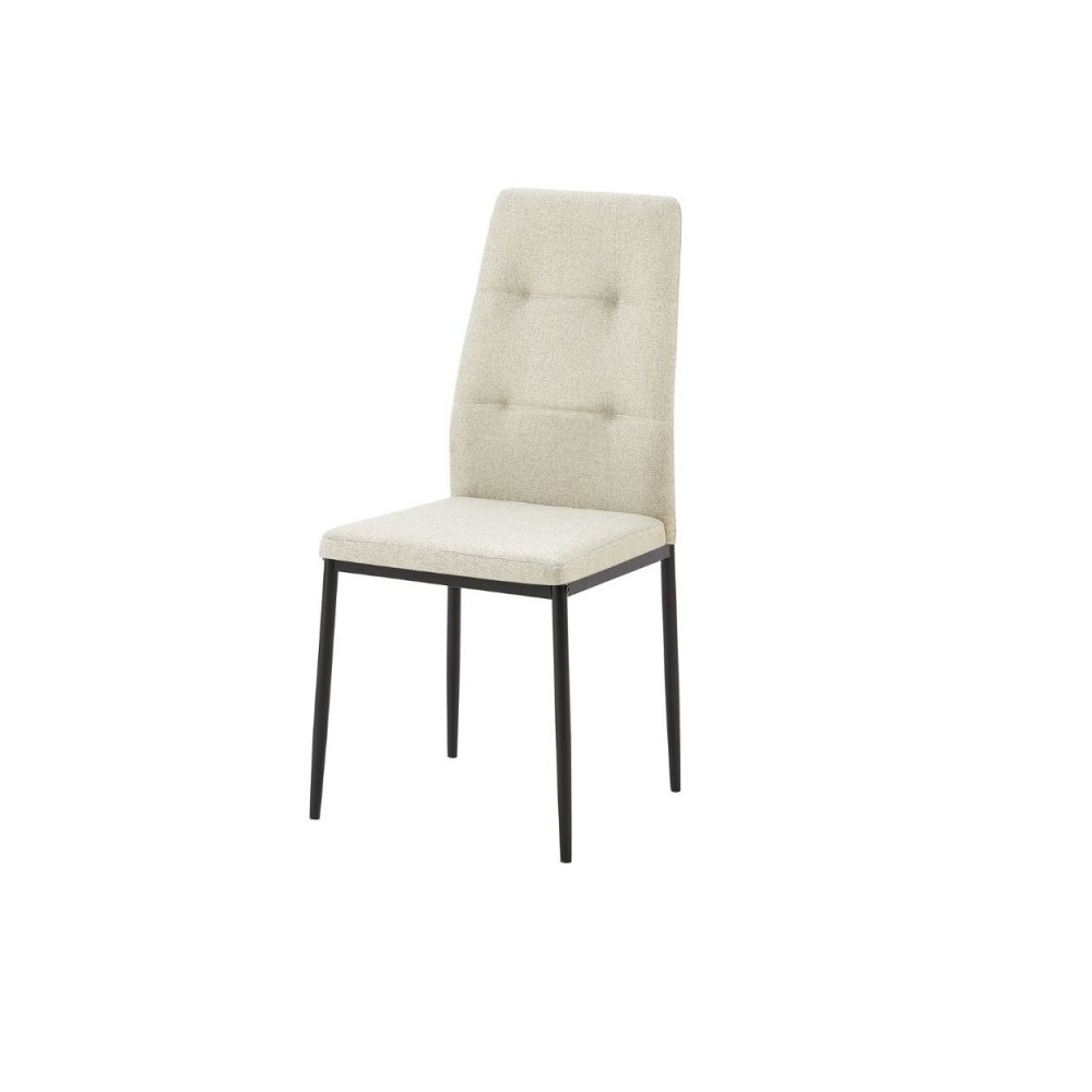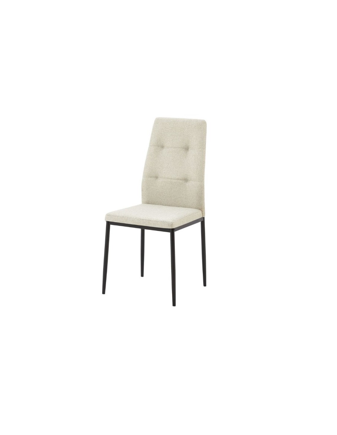 La sedia da pranzo Adara in tessuto beige è una sedia imbottita con struttura è in metallo di colore nero.
