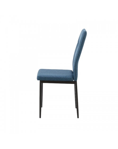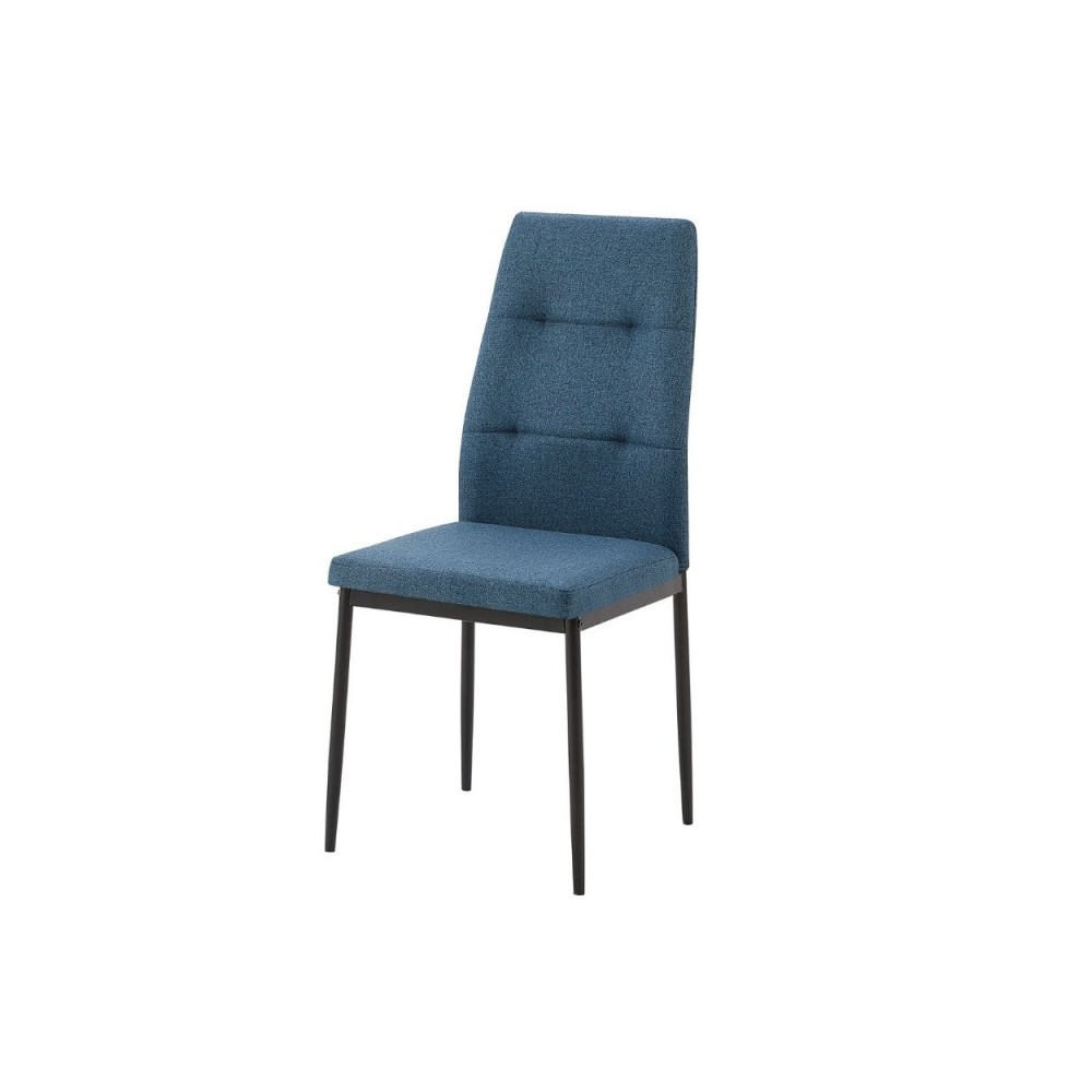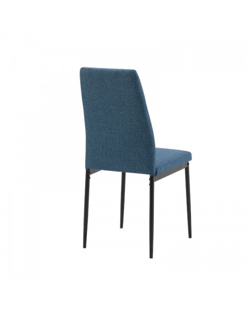 La sedia da pranzo Adara in tessuto blu è una sedia imbottita con struttura è in metallo di colore nero.