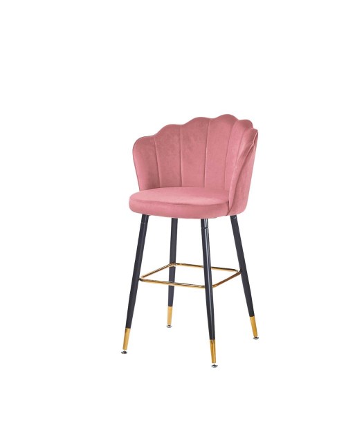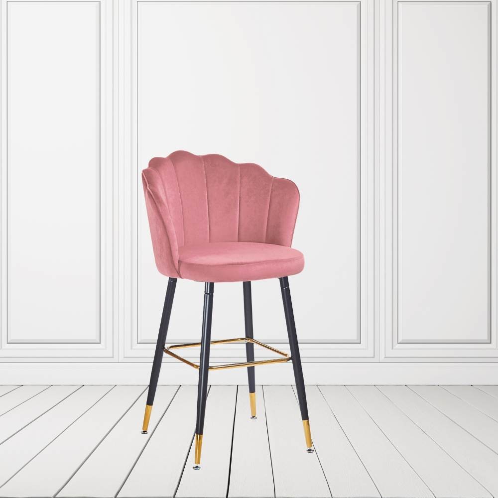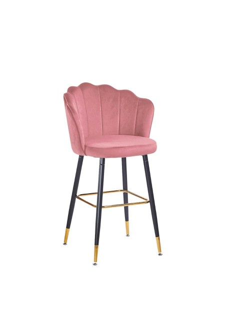 Sgabello velluto grigio Estro con struttura nera e terminali dorati