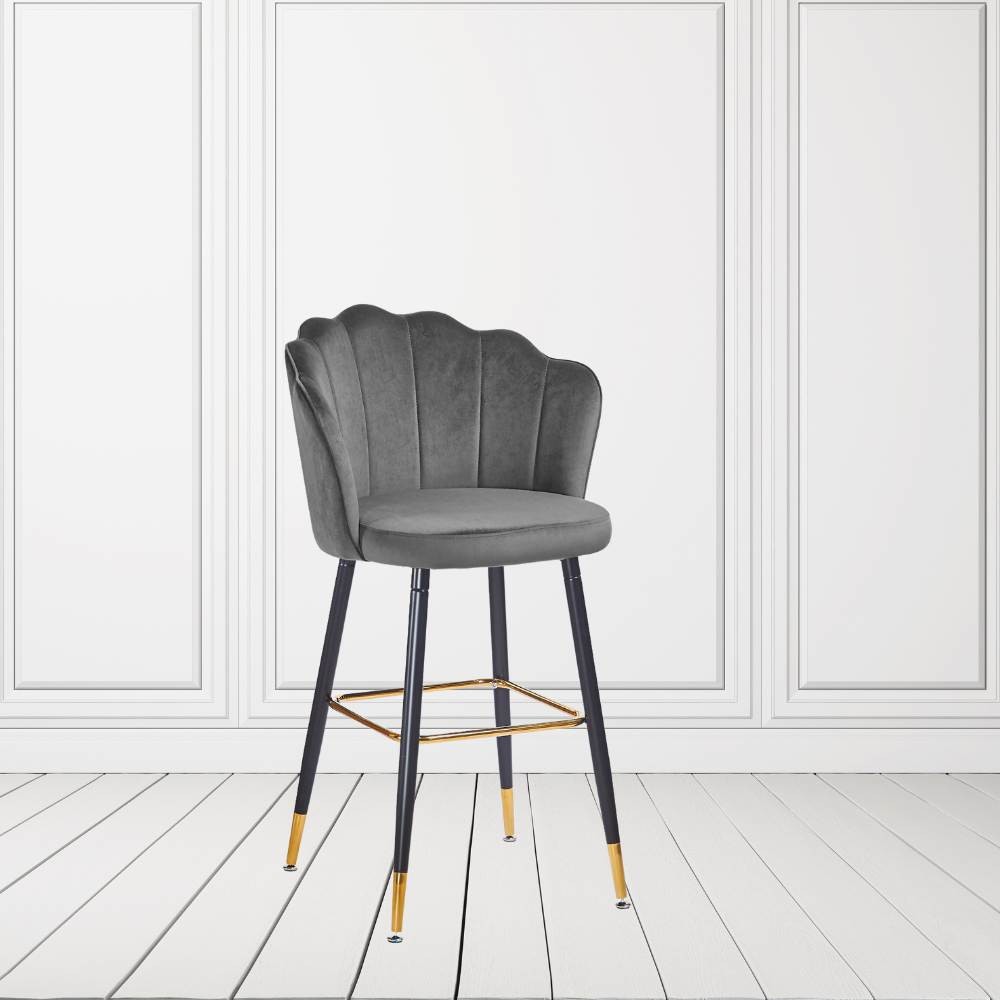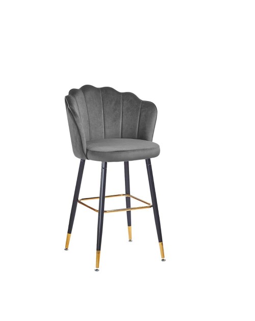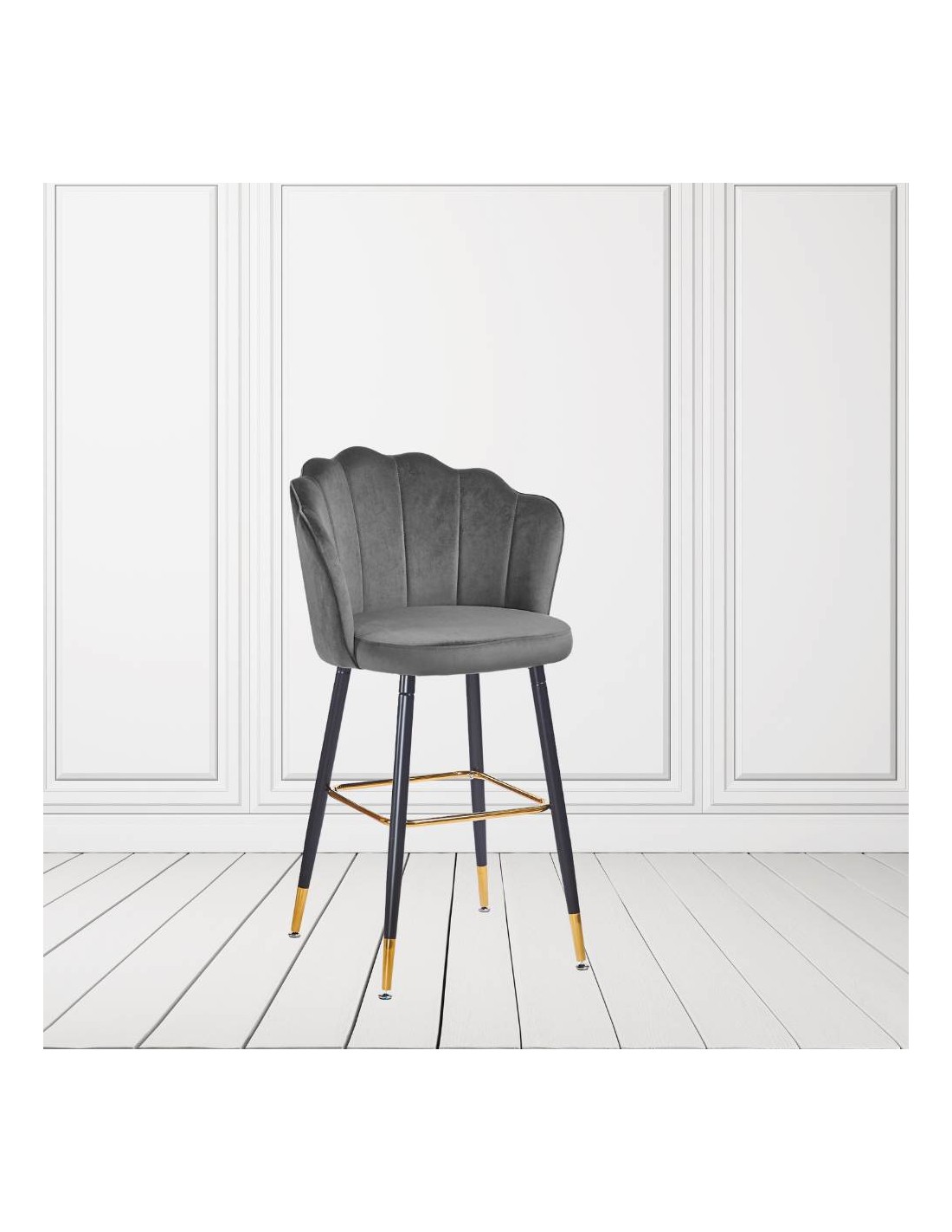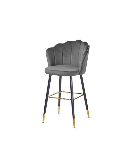 Lo sgabello moderno Estro in velluto grigio ti sorprenderà per il rivestimento in velluto e lo schienale dal design a conchiglia. Il telaio in metallo nero non solo garantisce un appoggio sicuro, ma offre anche un grande contrasto in termine di design grazie ai terminali dorati. Le linee arrotondate donano un aspetto morbido. Puoi posizionare questo sgabello nella zona pranzo su un tavolo alto o come seduta al bancone della cucina.