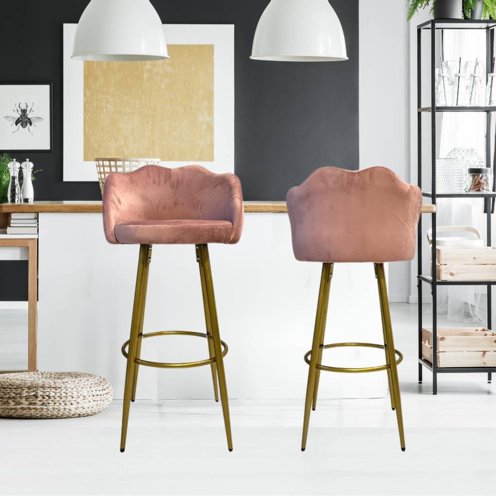 Sgabello a conchiglia in vellutino rosa e gambe in metallo dorate Orel