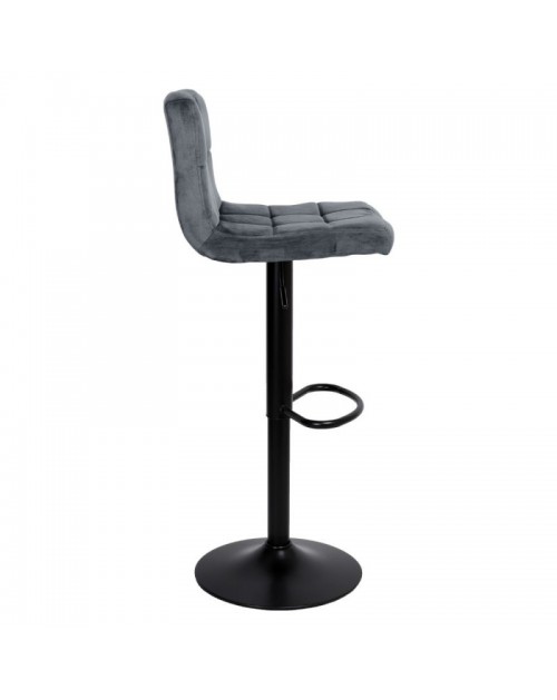 Sgabello regolabile con seduta in velluto grigio e base in metallo nero opaco Mosva