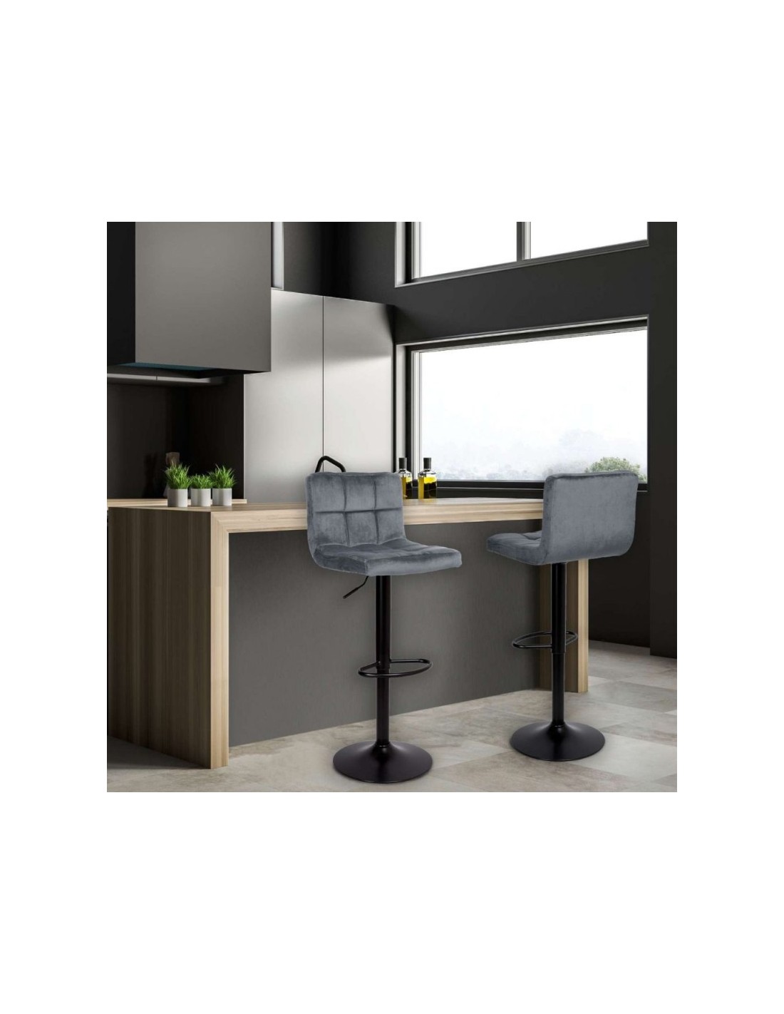 Lo sgabello Mosva nel colore grigio è perfetto arredare la tua cucina o la zona living. La base in metallo offre tanta stabilità, mentre la seduta in velluto, garantisce un elevato comfort.