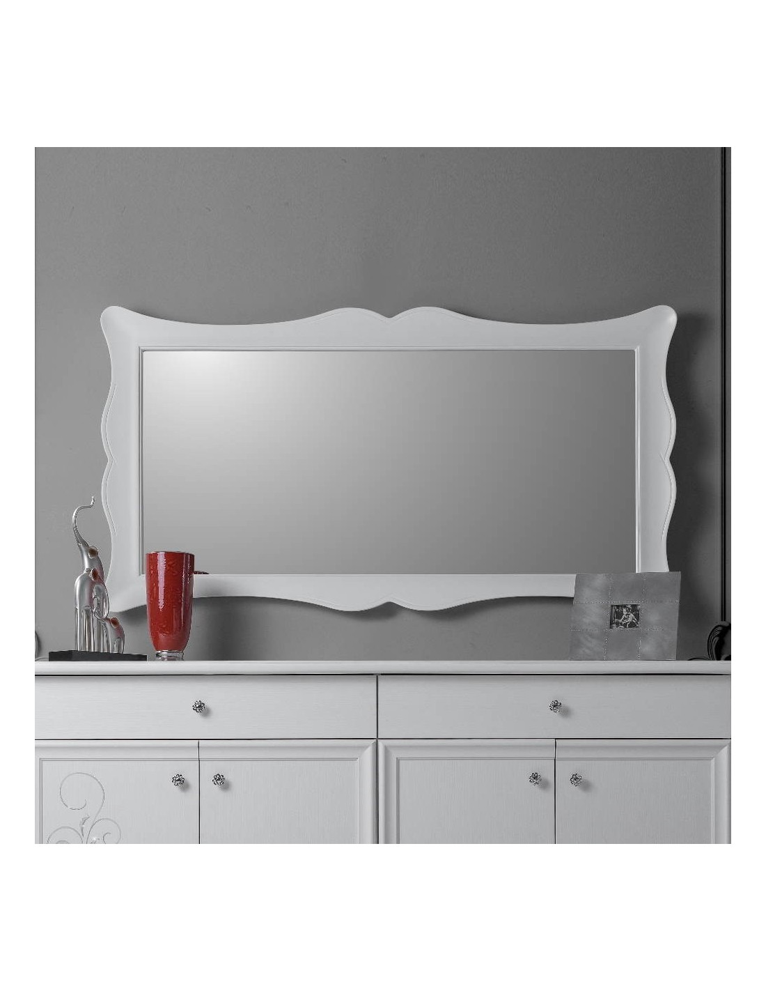 Specchiera con cornice bianca 160x7x85H cm. Giselle