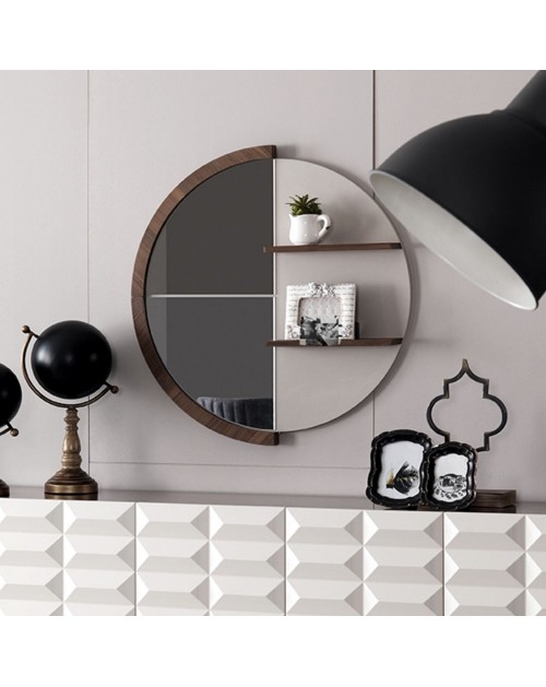 Specchiera rotonda con mensole legno naturale Diana