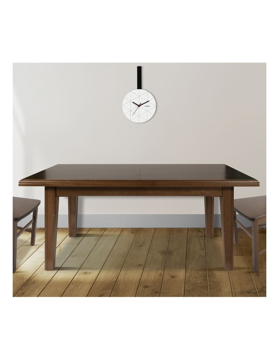 Robusto tavolo rettangolare con prolunghe.