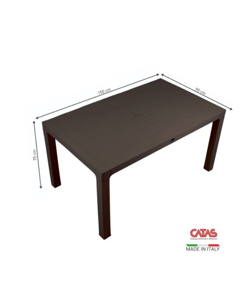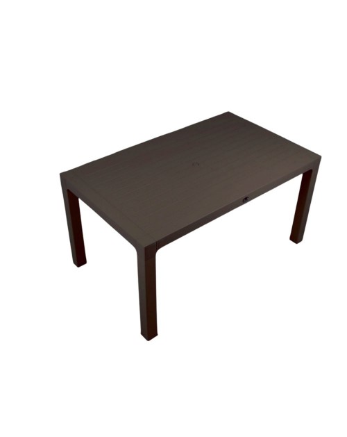 Tavolo rettangolare in polipropilene Wood brown, ideale per spazi esterni come patio, terrazzo, giardino o balcone.