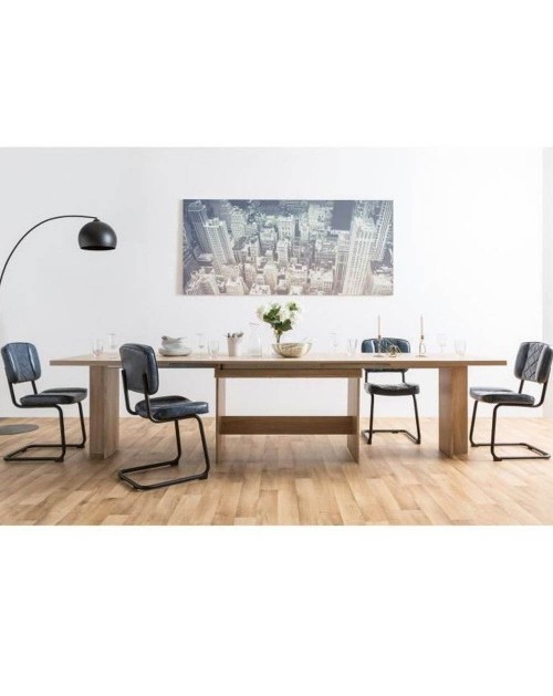 Accompagnato da tre allunghe da 50 cm ciascuna nascoste all'interno, il tavolo di L. 160/310 x l. 90 x H. 76 cm si estende in pochi secondi.