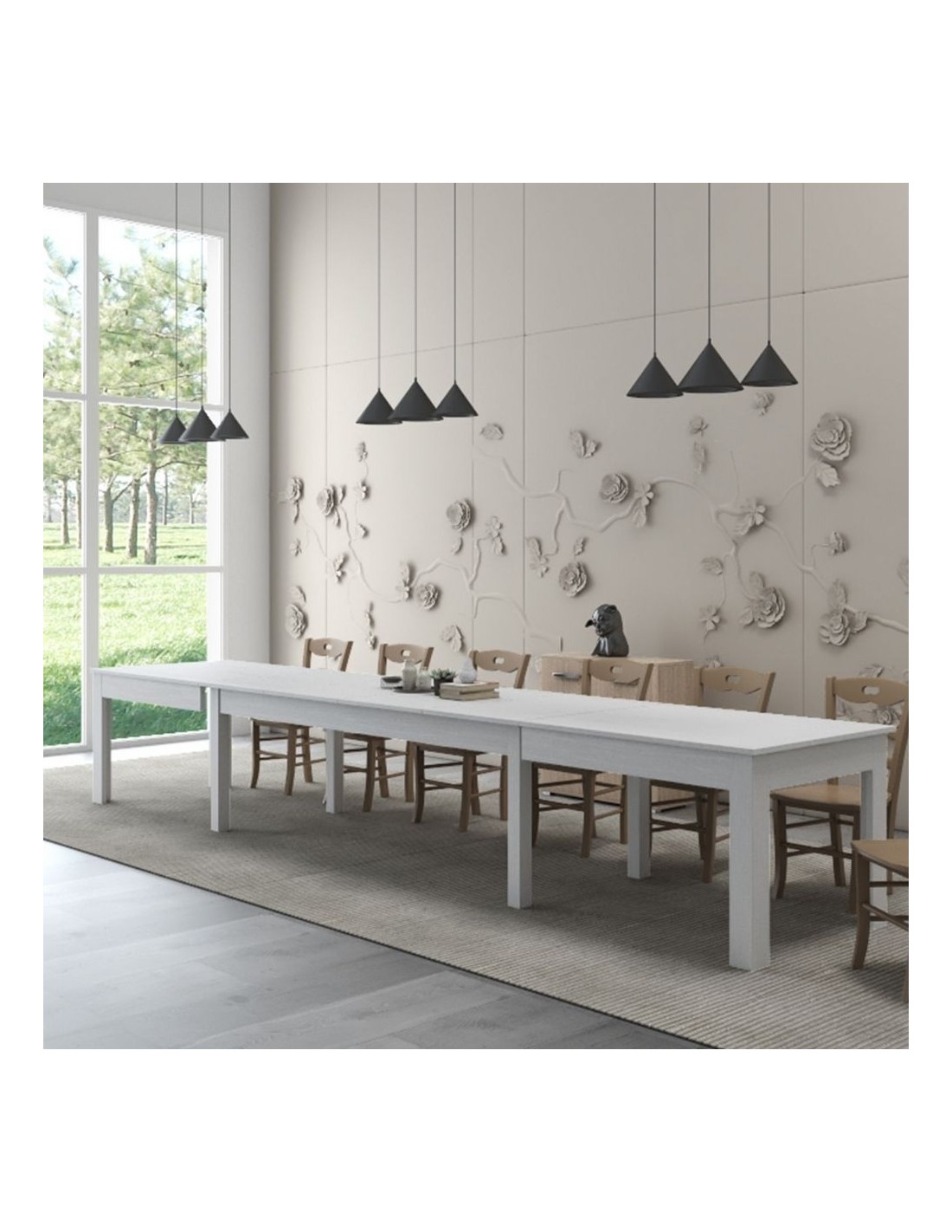 Tavolo da pranzo con pannello centrale reversibile nero o bianco Niklas.