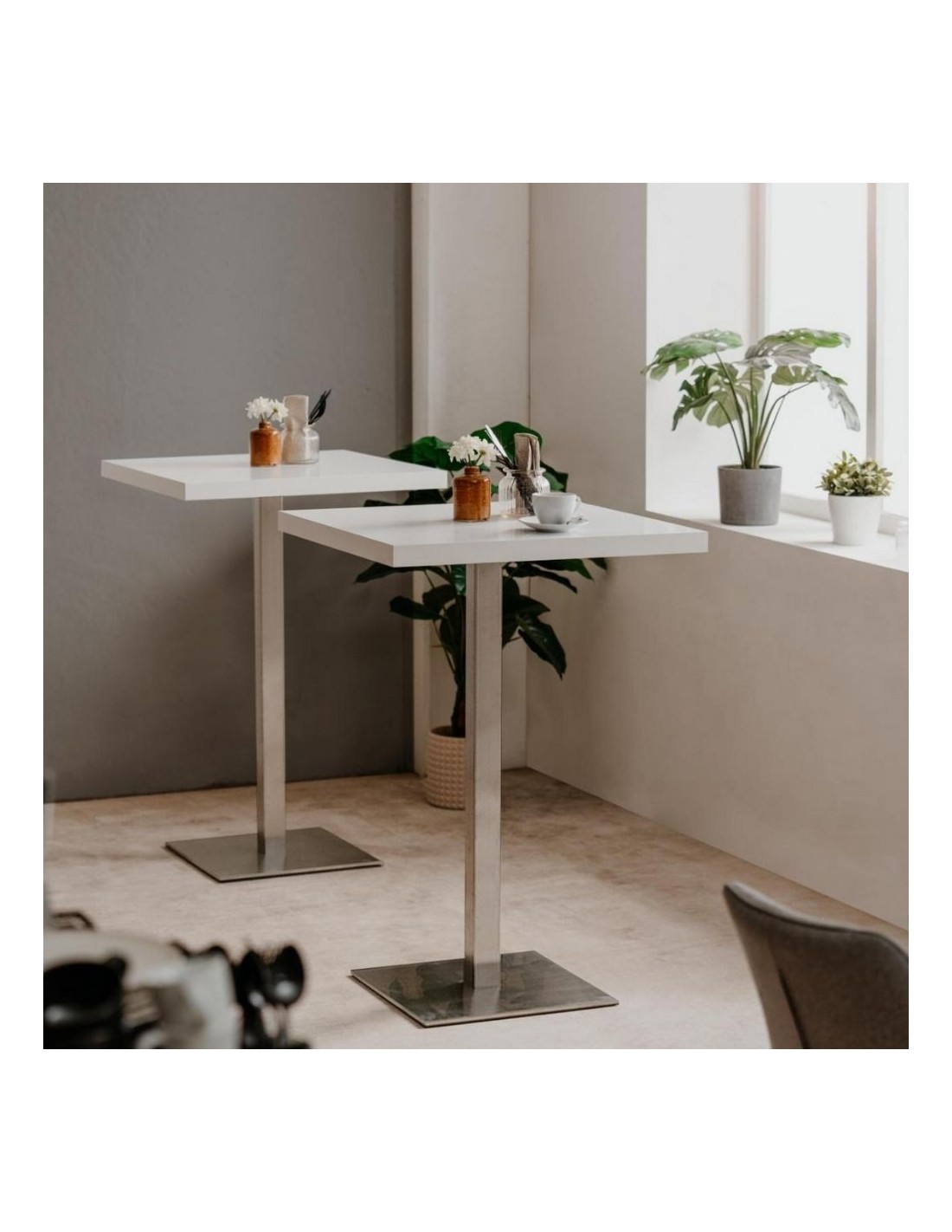 Tavolo alto Quadrato 70x70x105 h cm piano bianco e base cromo