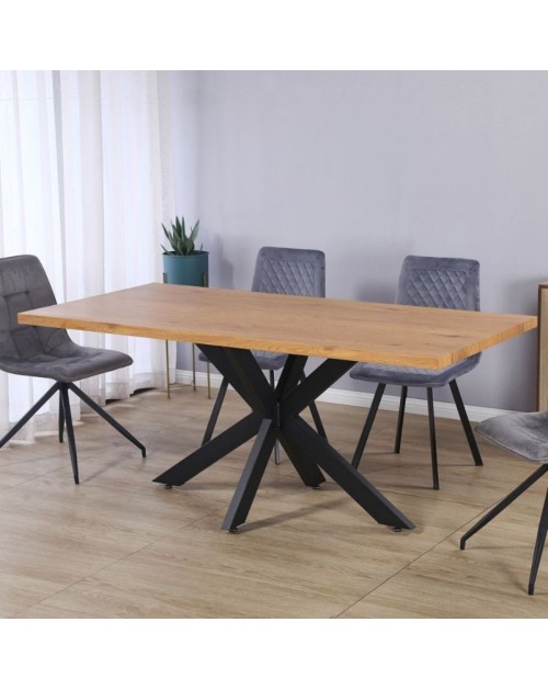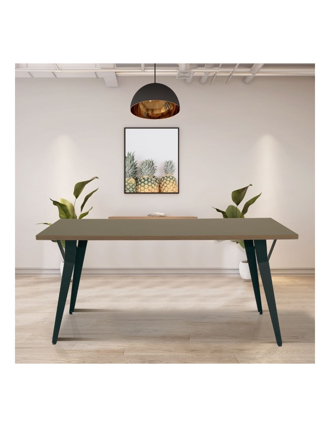 Tavolo rettangolare fisso dallo stile industriale. Le gambe in acciaio e il piano in melaminico lo rendono un complemento d'arredo dal fascino senza tempo. Perfetto per accogliere amici e parenti durante le tue cene.
