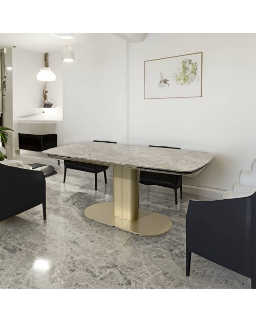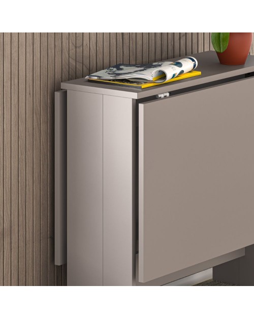 Tavolo pensato per chi vive in appartamenti di piccole dimensioni. E' dotato di un sistema a ribalta che consente di aprire il tavolo in modo indipendente, su uno o entrambi i lati. A ribalte chiuse si presenta come una comoda consolle. Prodotto pratico e moderno che unisce funzionalità e versatilità.