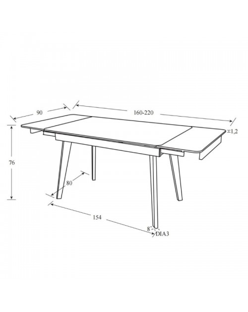 Misure aperto  L 220 x P 90 x H 76 cm.
