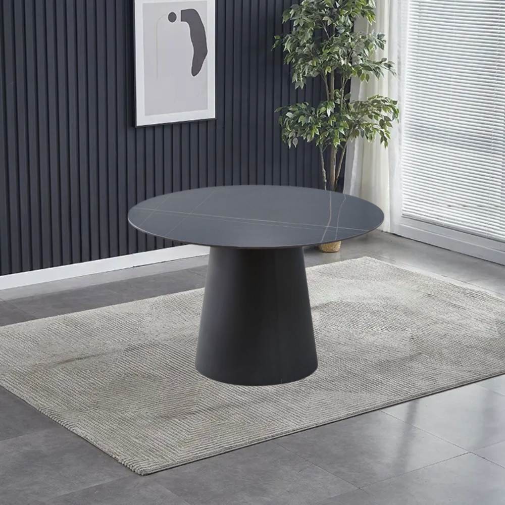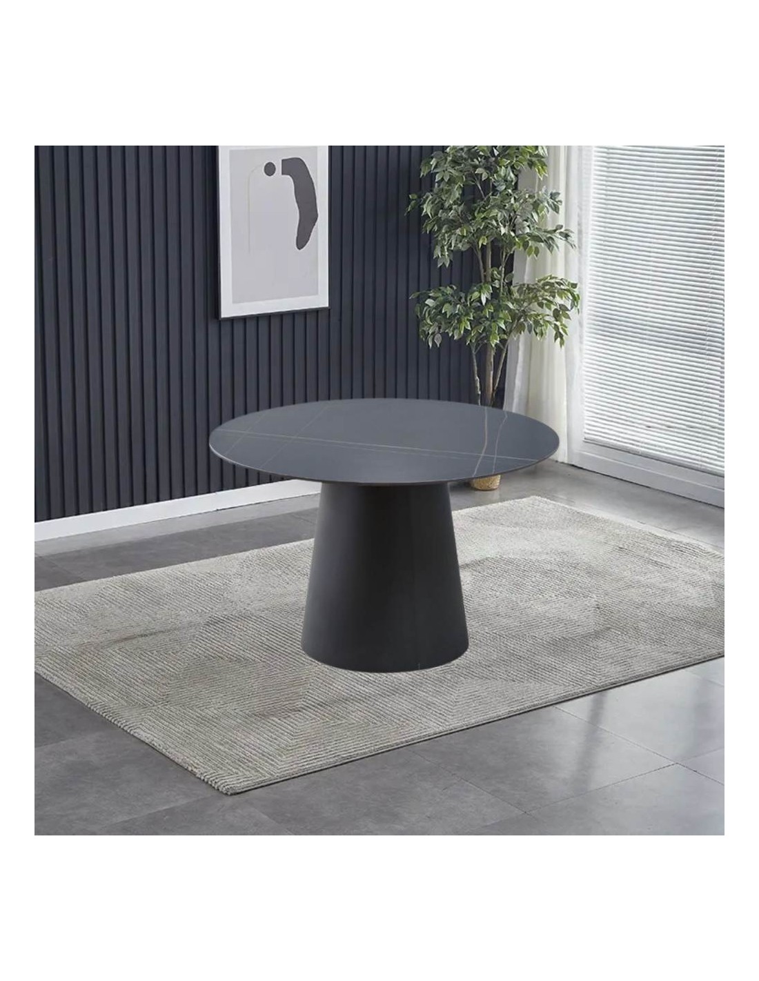 Tavolo rotondo piano ceramica effetto marmo nero oro Lauren 120x120x76h