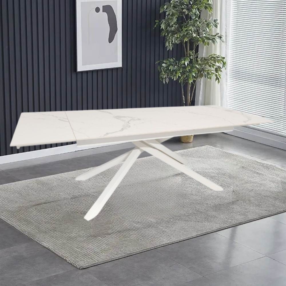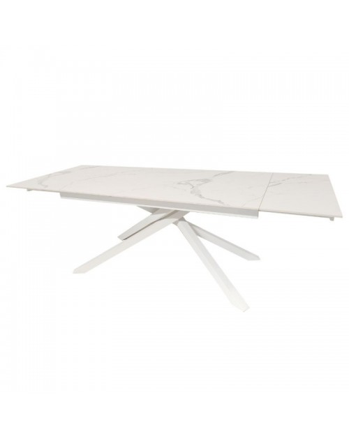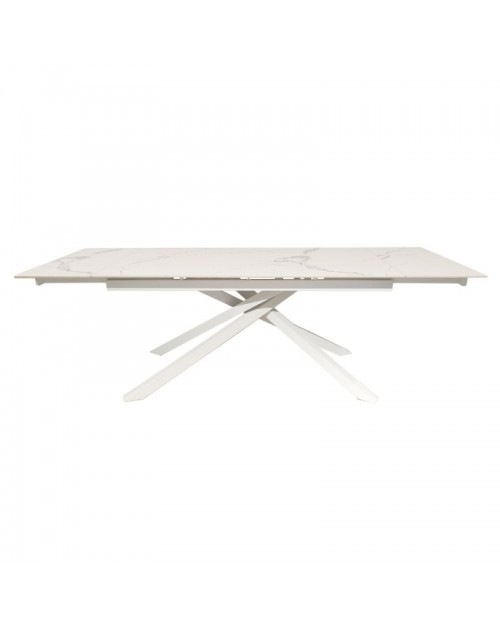 Tavolo allungabile top ceramica bianco statuario lucido e gambe in metallo bianco Nefti 160x90x76h
