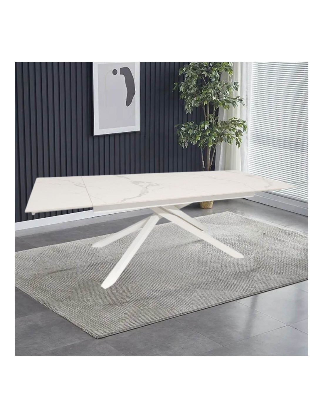 Il tavolo allungabile Nefti con top bianco statuario lucido, è caratterizzato da linee semplici e minimal, ma allo stesso tempo è un tavolo dal design unico. La struttura in metallo bianco è composta da gambe incrociate. Il piano in ceramica effetto marmo, dona raffinatezza a tutti gli ambienti. Nefti è perfetto per la sala da pranzo o un living moderno. Grazie alle due allunghe da 40 cm. poste sui lati, potrai allungarlo fino a 240 cm. accogliendo con facilità i tuoi ospiti.