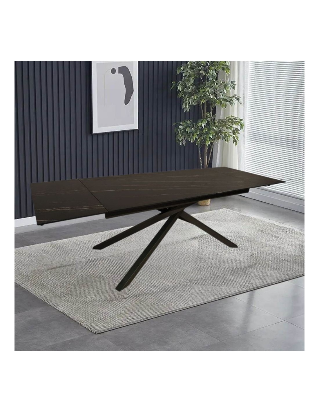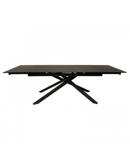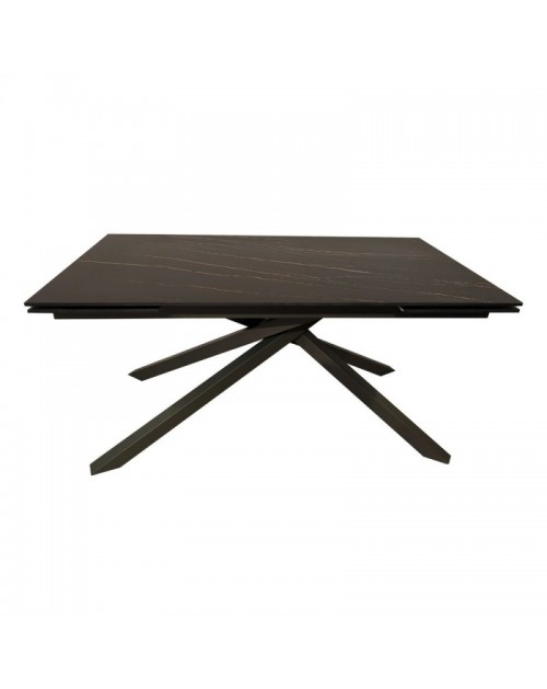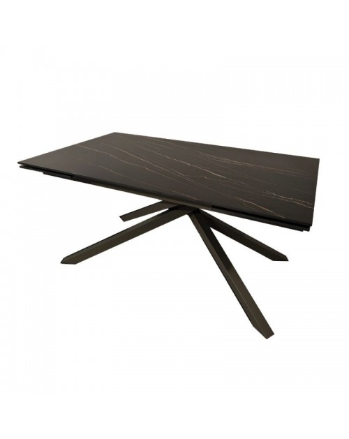 Tavolo allungabile top ceramica nero oro opaco e gambe in metallo grigio Nefti 160x90x76h