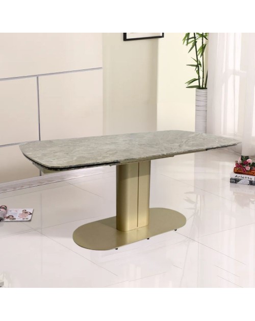 Il tavolo allungabile Vesta con top marrone atene lucido, è il connubio perfetto tra design e funzionalità. La base in metallo oro solida e robusta, ben sostiene e risalta il piano in ceramica effetto marmo con bordi stondati, donando eleganza a tutti gli ambienti. Vesta è perfetto per la sala da pranzo o un living moderno. Grazie alle due allunghe da 40 cm. poste sui lati, potrai allungarlo fino a 240 cm. accogliendo con facilità i tuoi ospiti.