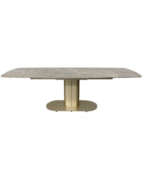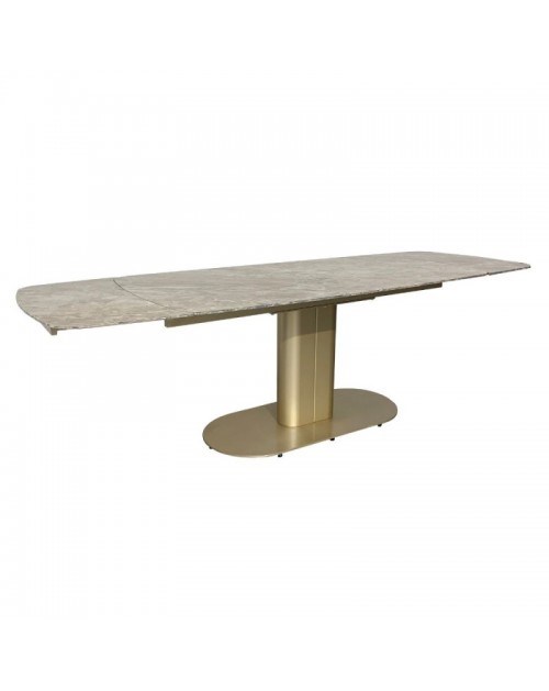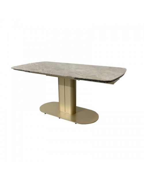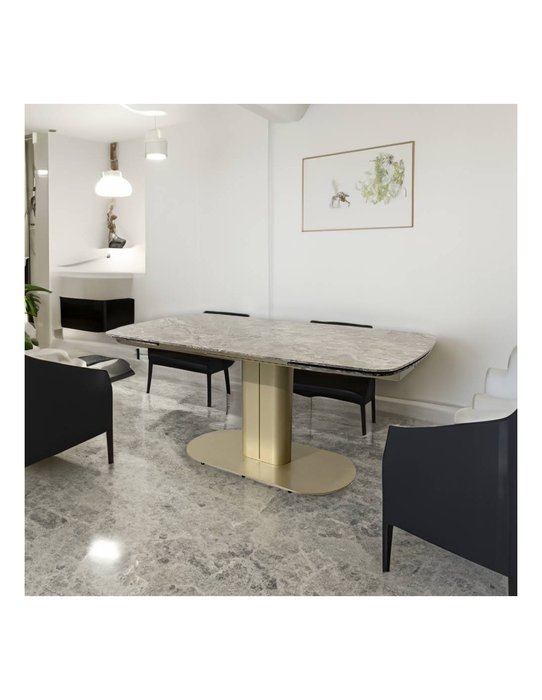 Tavolo allungabile top ceramica marrone atene lucido e base in metallo oro Vesta 170x90x76h