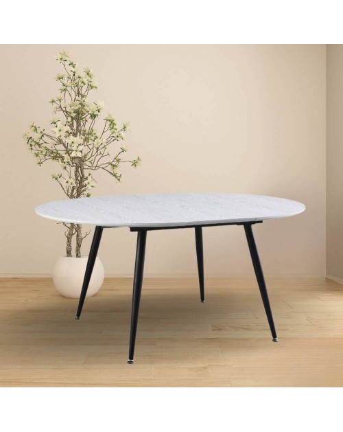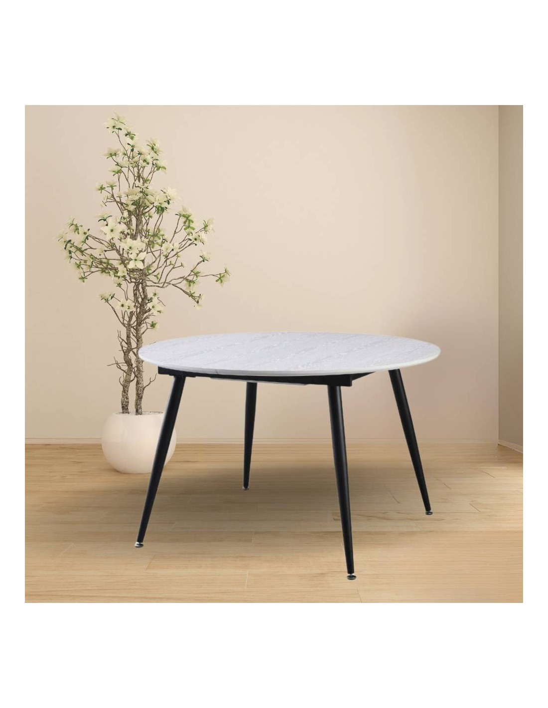 Tavolo rotondo allungabile bianco con gambe nere Cordelia 120x120x75