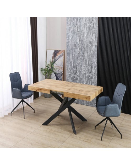 Tavolo rettangolare allungabile piano rovere e base nera Belinda 160x90x75