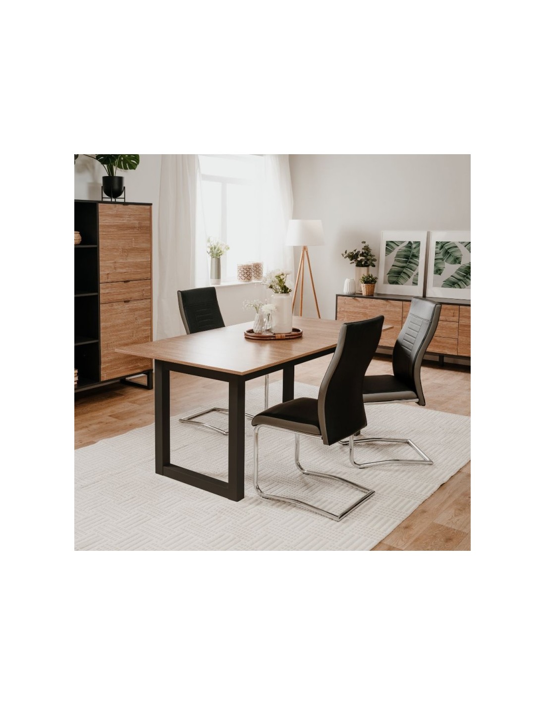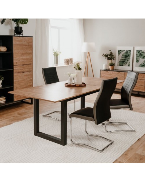 Tavolo rettangolare allungabile piano color legno e gambe antracite Austin80A 160x90x75