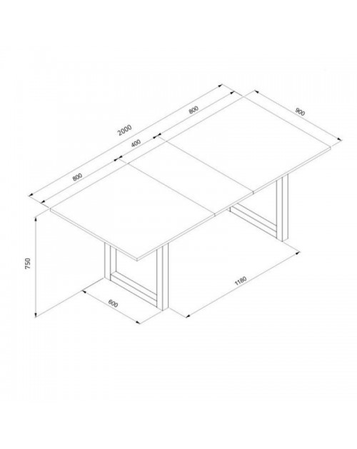 - Misure tavolo aperto: H 75 x P 90 x L 200 cm.