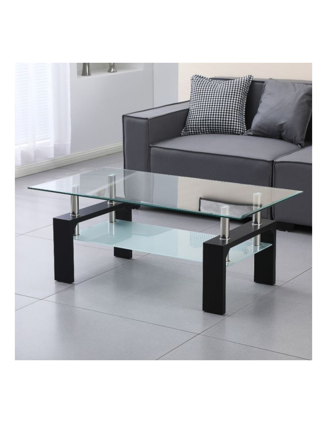 - Tavolino con doppio piano in vetro