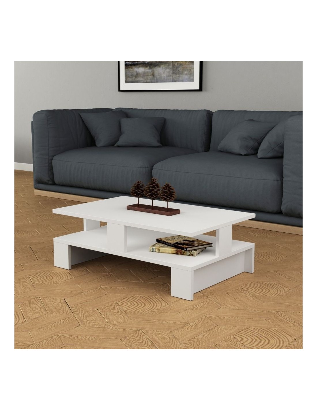 Tavolo da salotto bianco doppio ripiano Mansu