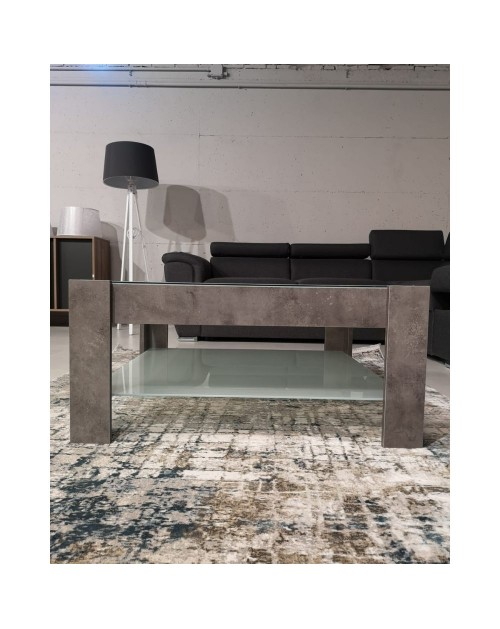 Tavolino da salotto cemento con doppio ripiano in vetro Homy