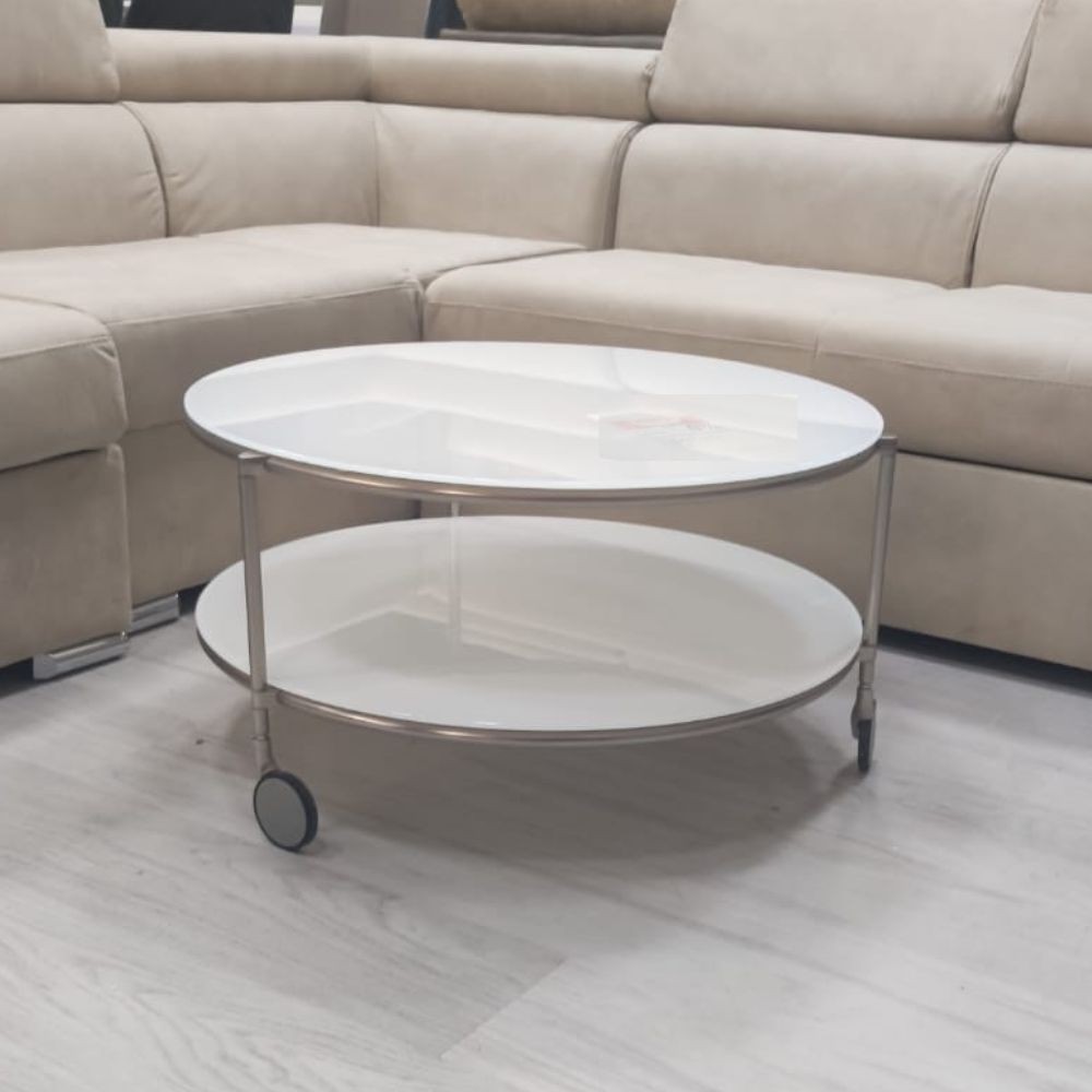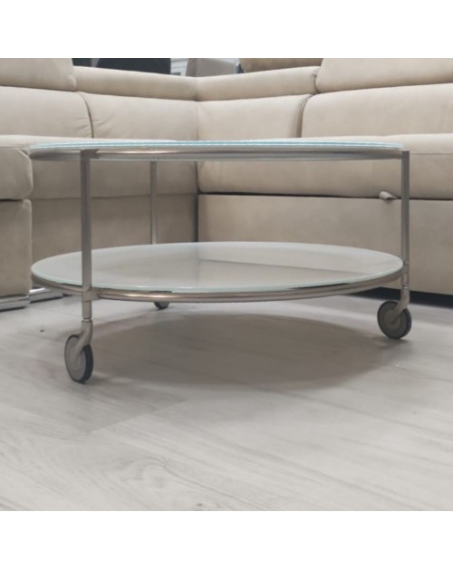 Tavolo basso rotondo struttura ferro e ripiani vetro bianco Tavolotondo