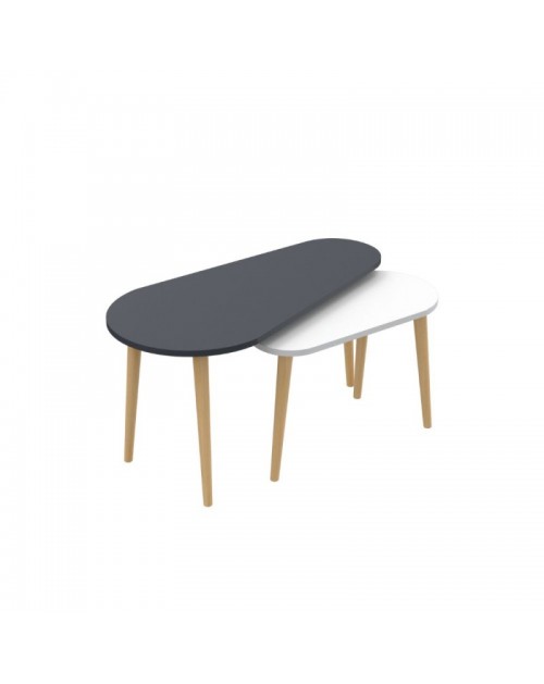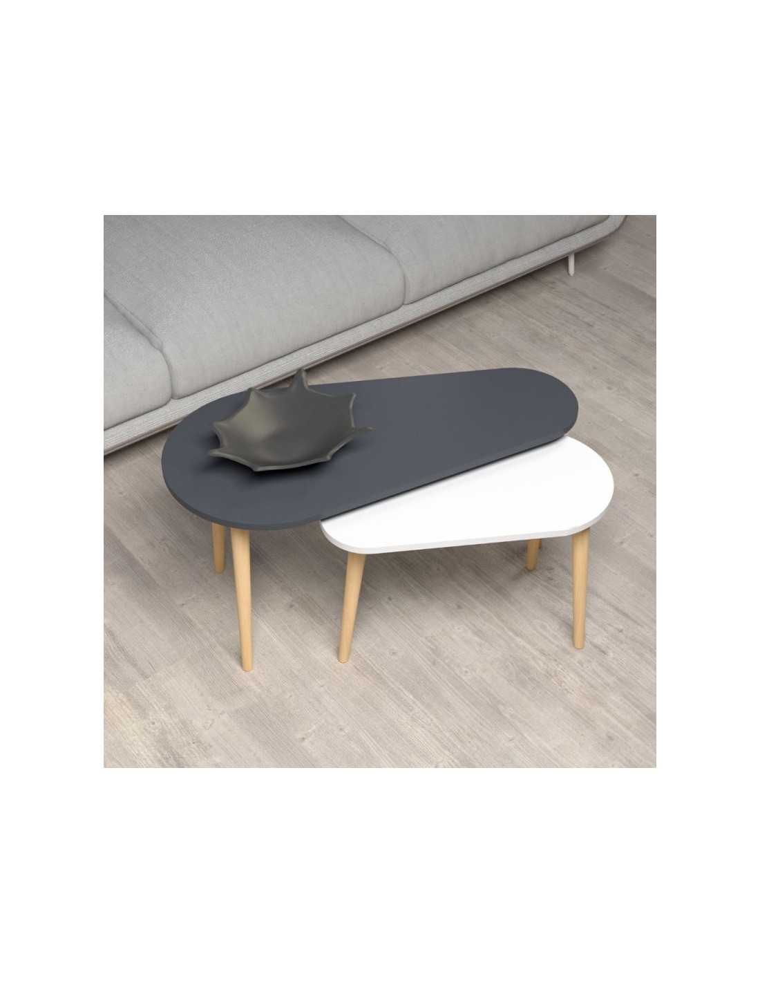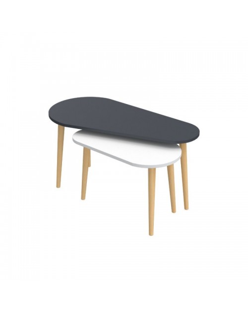 Il set di tavolini bassi Pear sono perfetti per essere sistemati al centro del salotto. Un tavolino da divano é molto pratico come superficie d'appoggio per un libro, gli snack e le bevande per una serata davanti la TV. Grazie alle altezze diverse i tavolini sono sovrapponibili, lasciando cosí piú spazio nel soggiorno. I colori antracite e bianco sono facilmente abbinabili ad ogni ambiente.