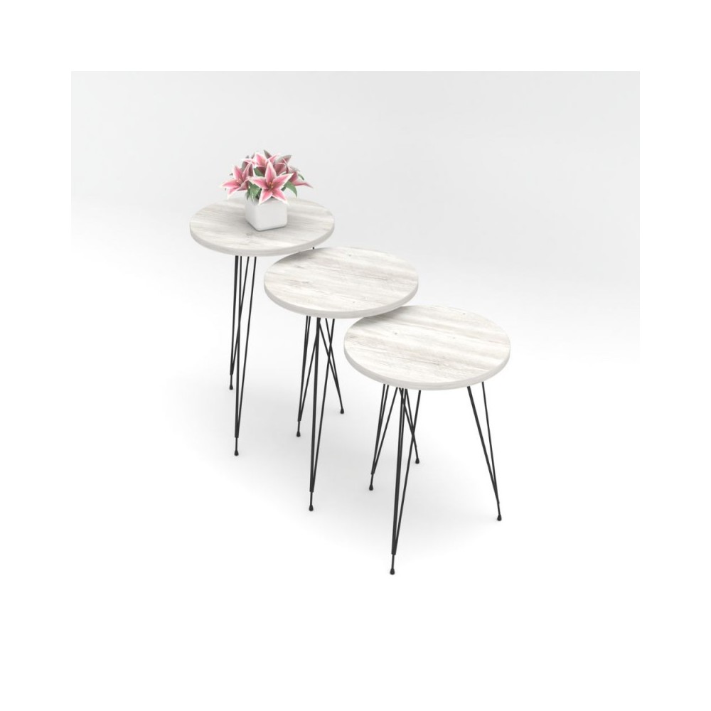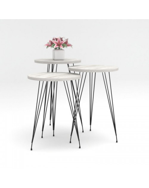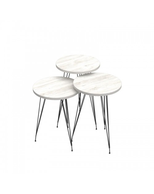 Tris Tavolini da caffè bianco gambe nere Nisa 38
