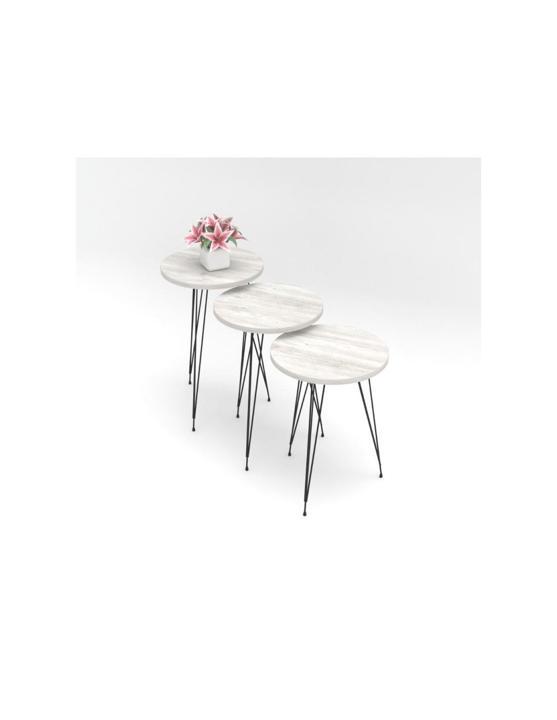 Elegante tris di tavolini da caffè bianco con gambe in colore nero. Ideale per dare quel tocco di personalità ai tuoi ambienti grazie alle tre differenti dimensioni.