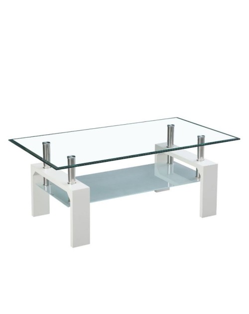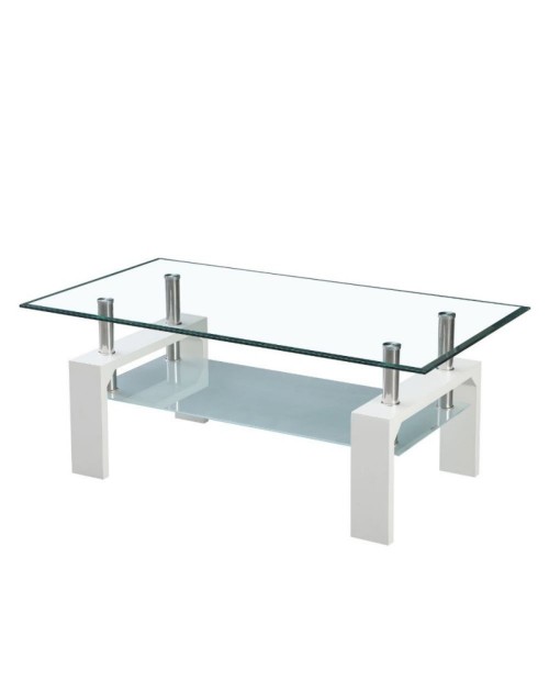 Tavolino bianco con due ripiani in vetro Titania 110x60x44h