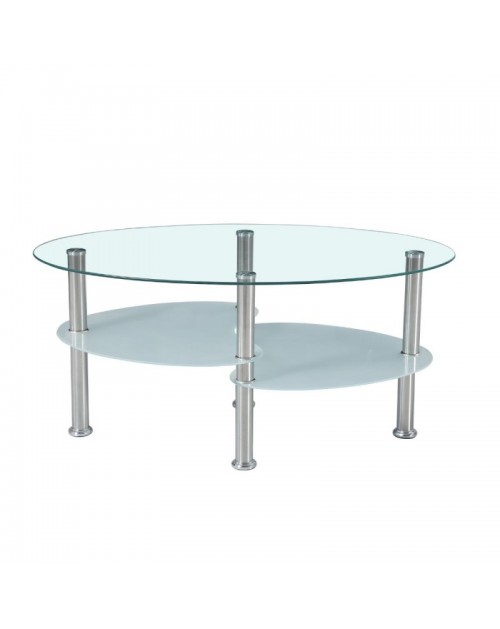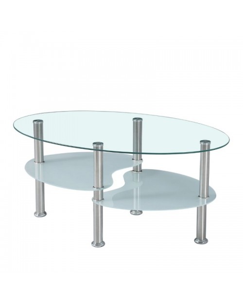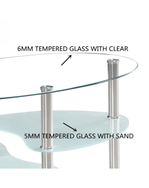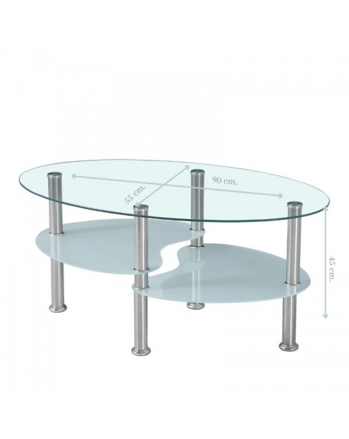 Tavolino ovale da salotto con 3 piani in vetro 90x55x45 Mimas