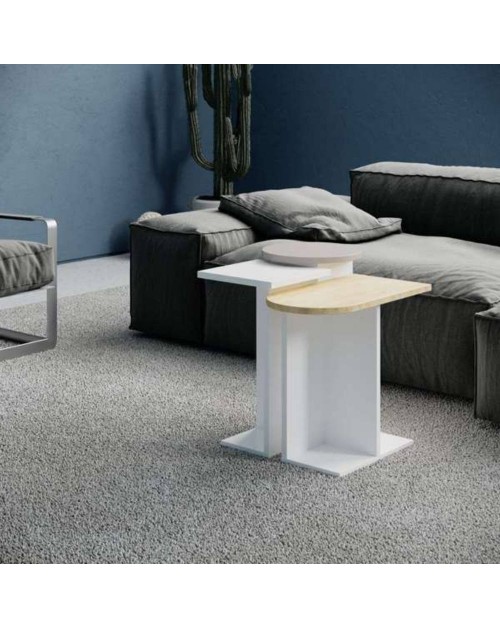 I tavolini sono realizzati in truciolare di alta qualità con rivestimento melaminico, un materiale resistente e facile da pulire.