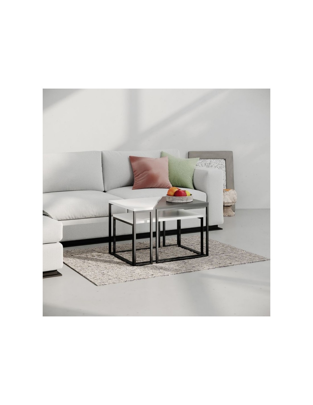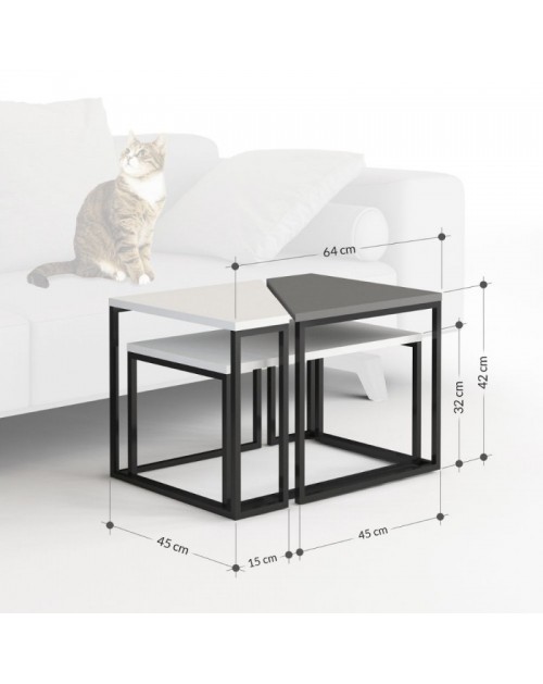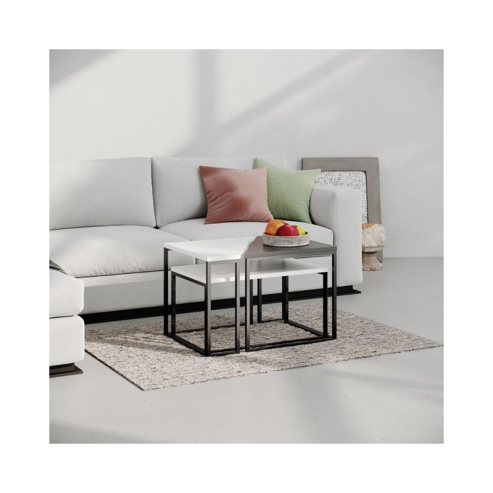 Set 3 tavolini da salotto bianco e antracite OhLady