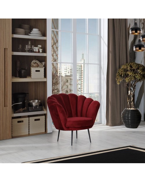 Poltrona a conchiglia in velluto rosso Orel