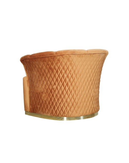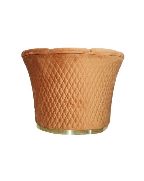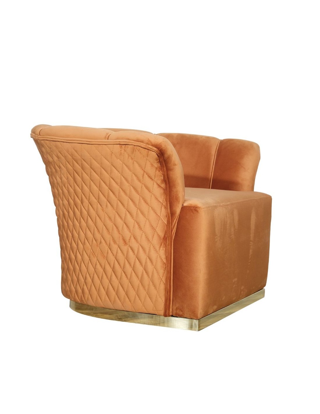Comoda poltrona realizzata con materiali di ottima qualità. Caratterizzata da linee morbide e seduta avvolgente. Lo schienale presenta cuciture a forma di rombo mentre la base è colore oro. Realizzata per la camera da letto ma puoi adattarla facilmente alla zona living per creare il tuo angolo di relax oppure nel tuo studio. Questa poltrona è un valido complemento d'arredo per rendere curati e raffinati i tuoi ambienti.