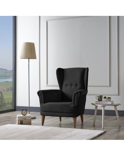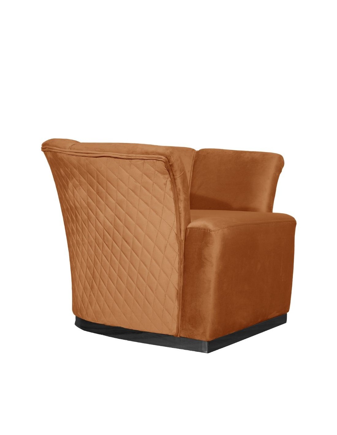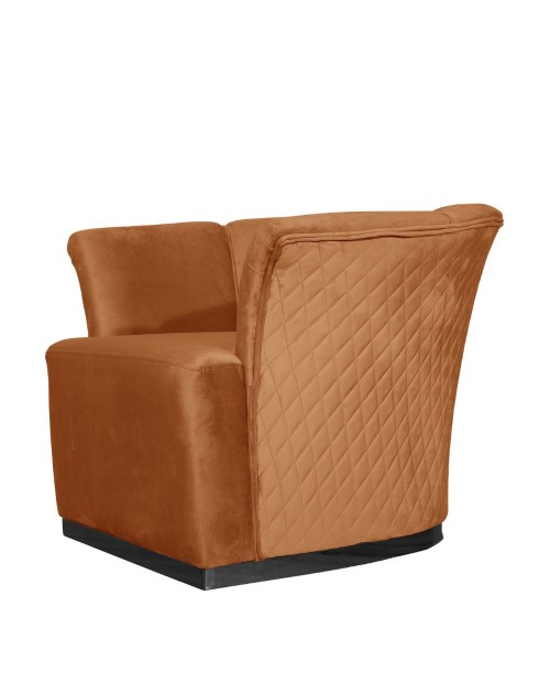 Comoda poltrona realizzata con materiali di ottima qualità. Caratterizzata da linee morbide e seduta avvolgente. Lo schienale presenta cuciture a forma di rombo mentre la base è colore nero. Realizzata per la camera da letto ma puoi adattarla facilmente alla zona living per creare il tuo angolo di relax oppure nel tuo studio. Questa poltrona è un valido complemento d'arredo per rendere curati e raffinati i tuoi ambienti.