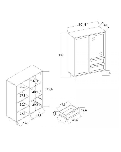 Misure: 101.4x40x139 h cm.