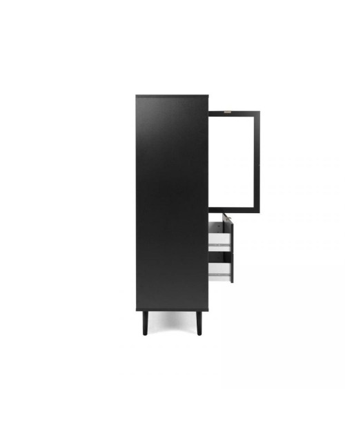 La vetrina 2 ante e 2 cassetti nera con frontali stampati effetto vimini Vienna53A è la soluzione ideale per chi cerca originalità. I vani divisi da ripiani e i cassetti, offrono tanto spazio per avere tutto in ordine. La struttura nera e i frontali effetto vimini sono elementi di design unici che renderanno i tuoi ambienti esclusivi. Solida e robusta è progettata per durare nel tempo.