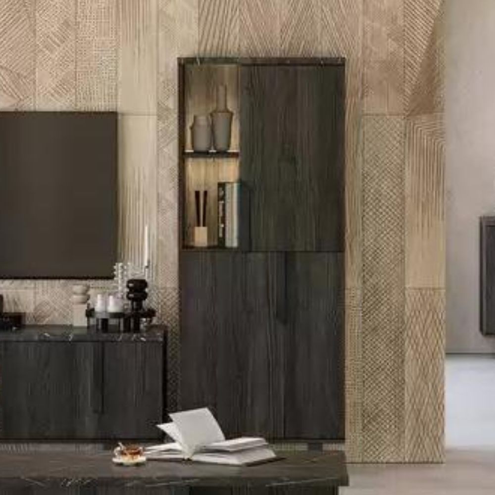 La vetrina soggiorno con anta destra modello Zaira è perfetta per ogni tipo di arredamento.