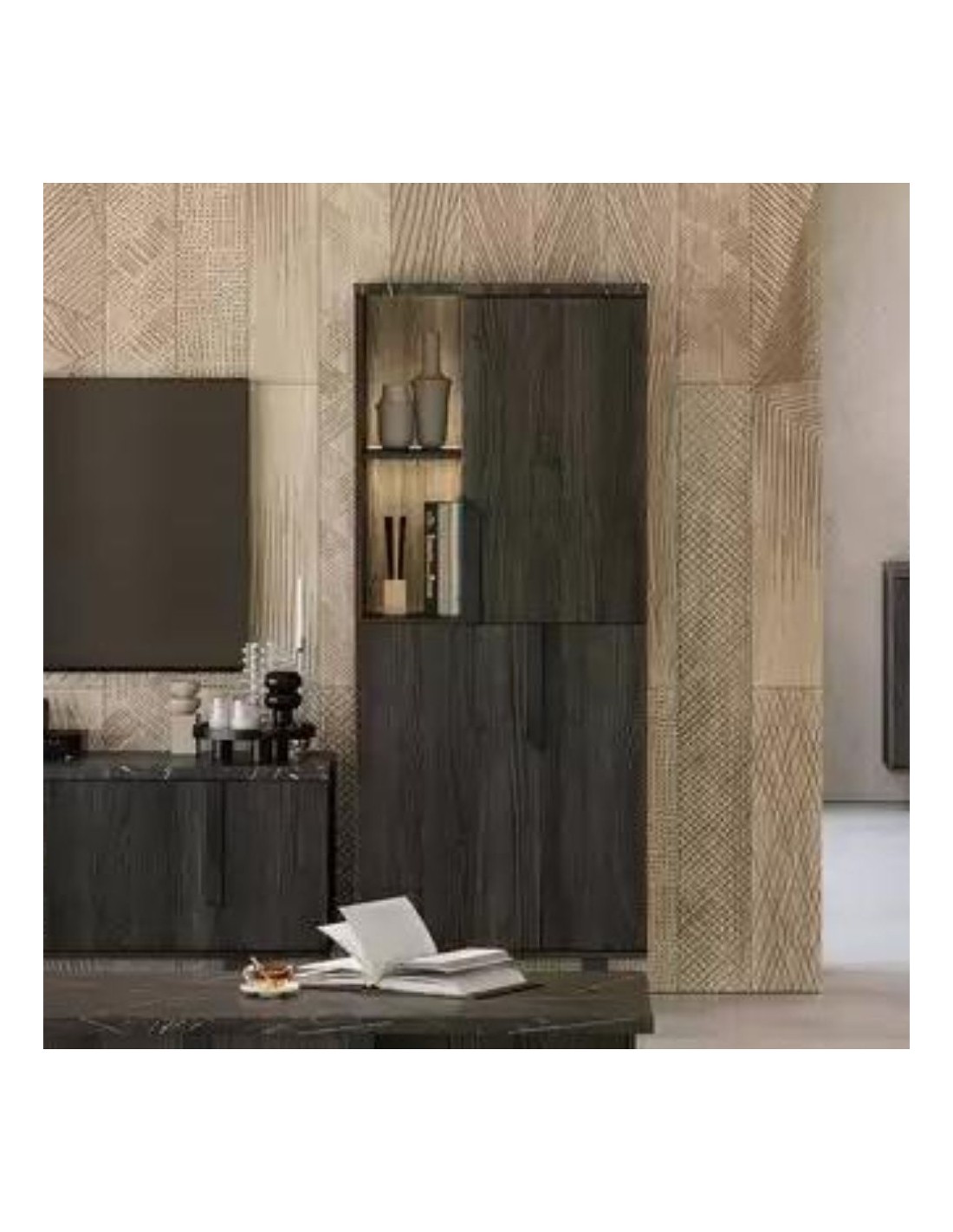 Pratico ed elegante anche il vano a giorno con ripiano tra le due ante.